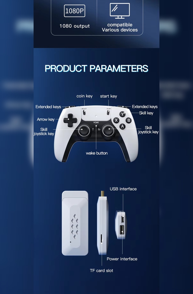 Portable Design: Compact game stick format allows easy connection to any HD display for gaming.