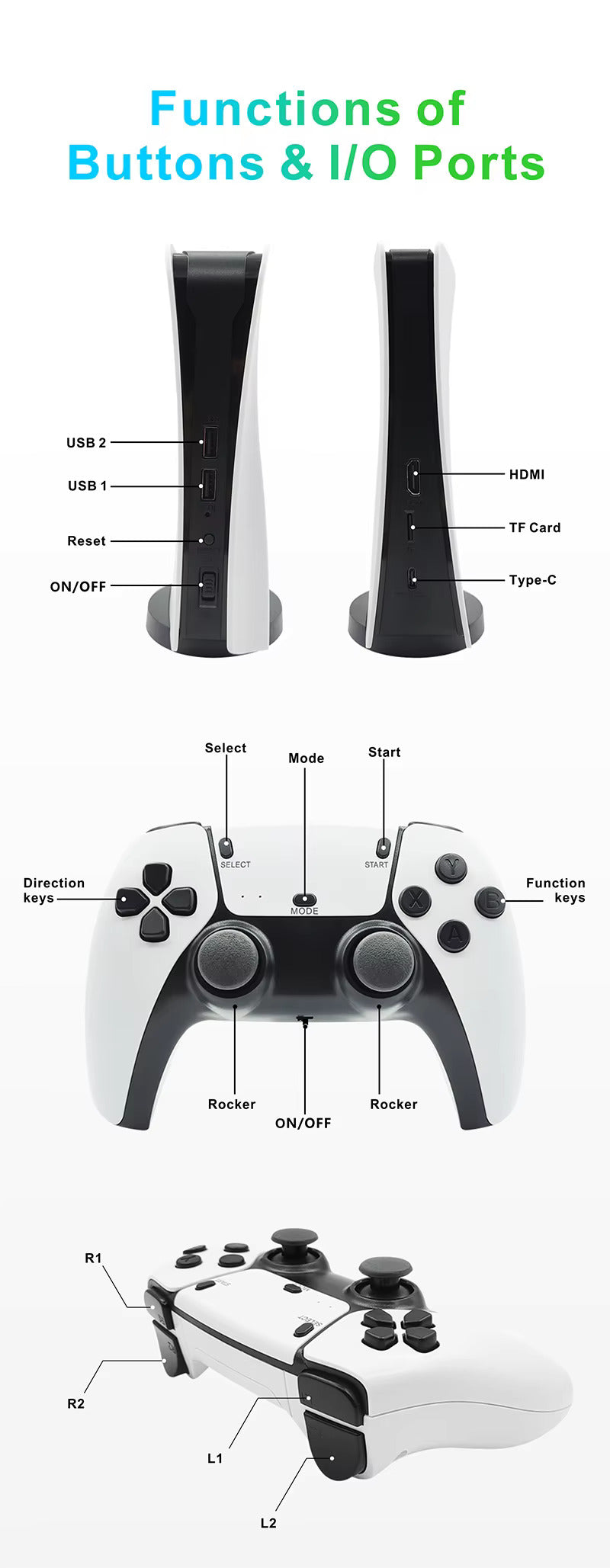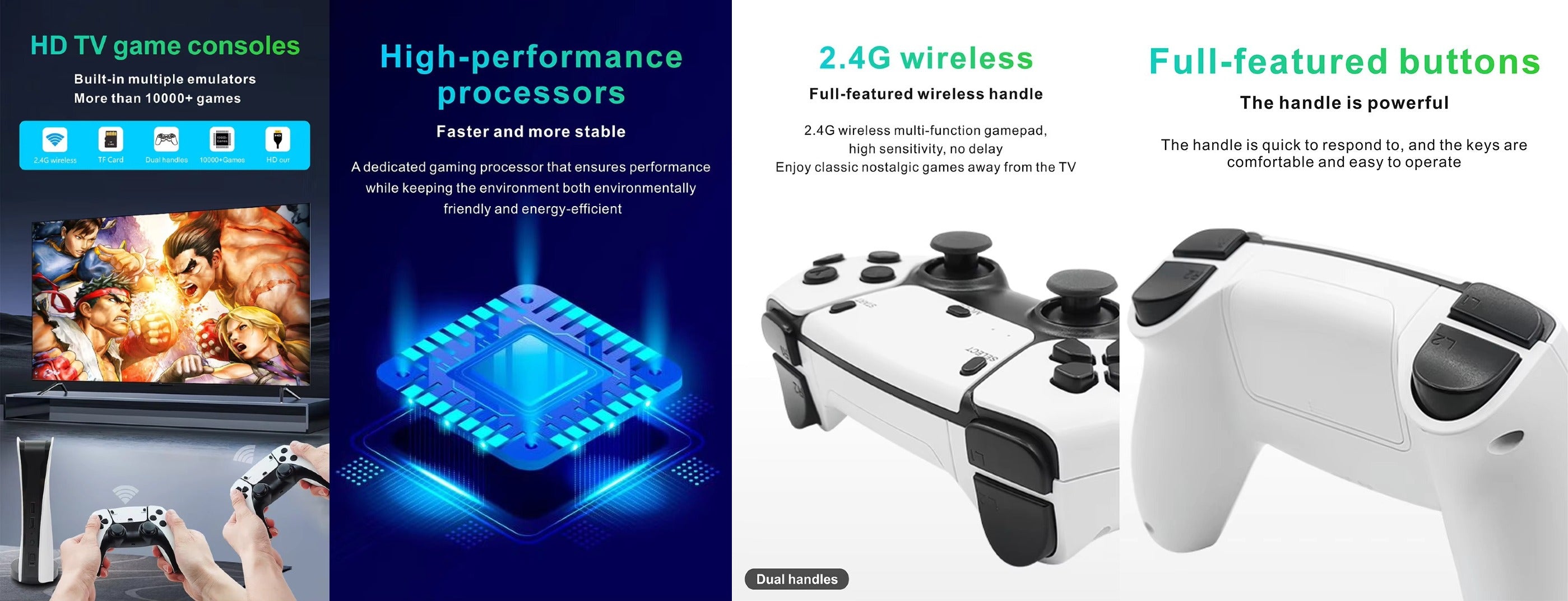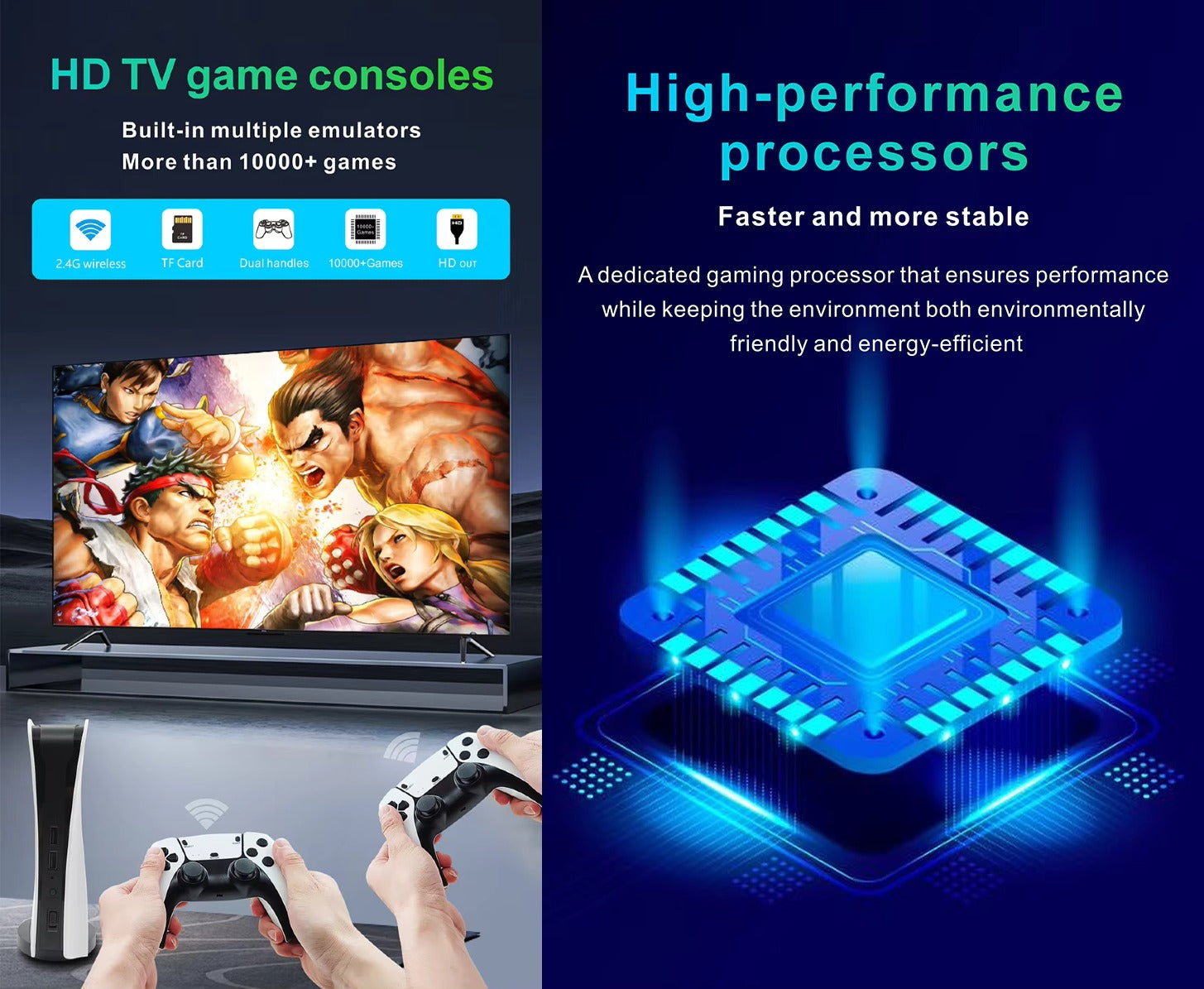 Ditch the cables and play freely with two 2.4GHz wireless controllers. Offering lag-free performance and precise control, these ergonomic gamepads ensure a responsive and immersive gaming session—perfect for intense multiplayer battles or casual fun.