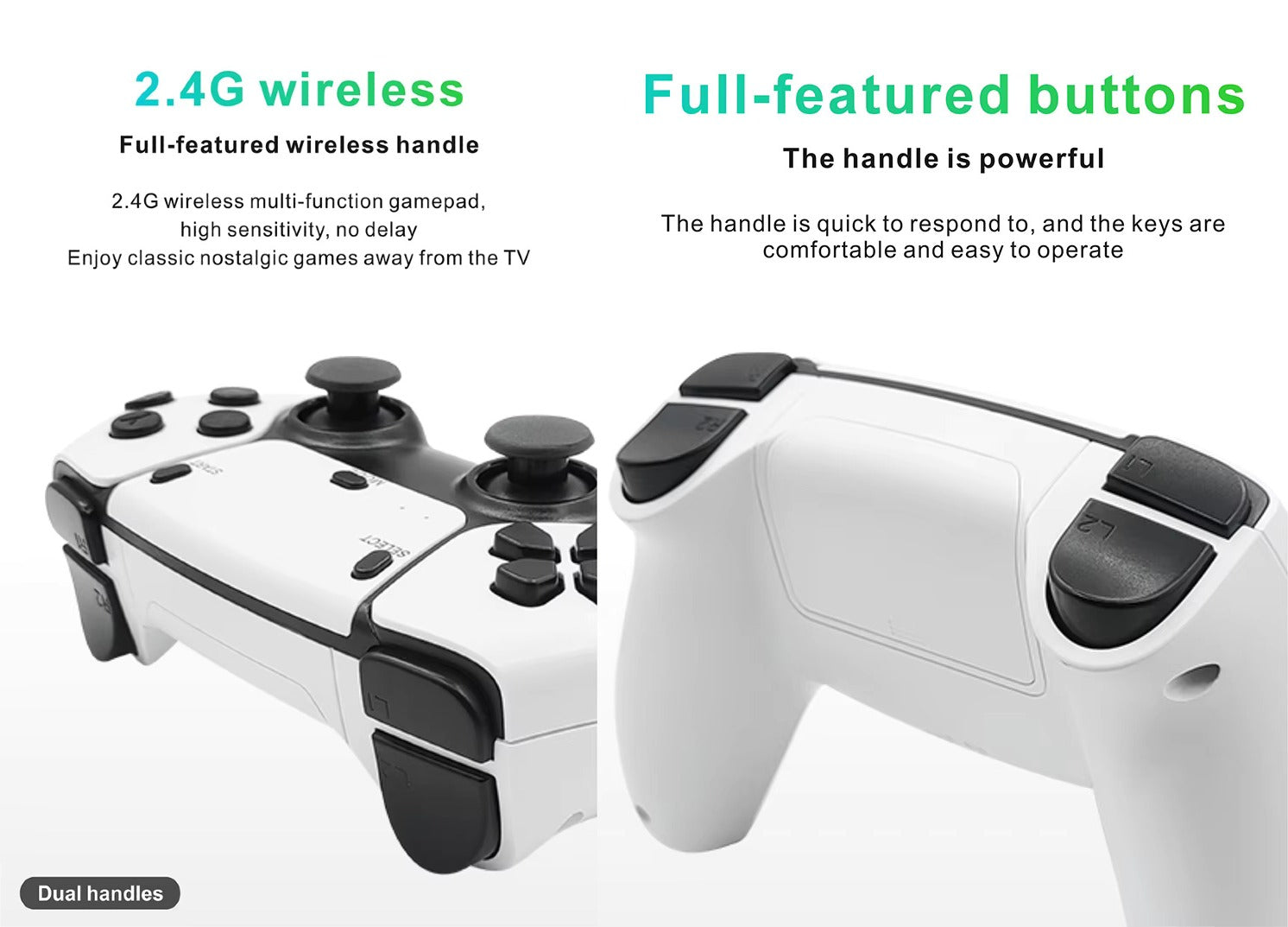 🎮 Dual 2.4G Wireless Controllers – Smooth, responsive control without wires